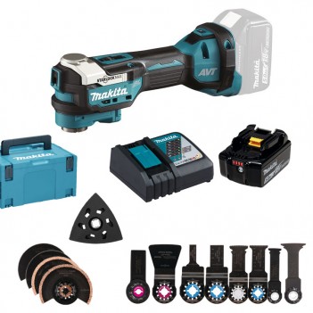 Multifunktions-Werkzeug 18V DTM52 (mit oder ohne Batterien) MakitaDas Makita DTM52 18V Multitool ist ein vielseitiges Werkzeug ideal für Renovierungs- und Einrichtungsarbeiten, z. B. Schneiden von Fenstern, Glas, Fliesen, Holz und Metall schleifen etc.