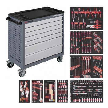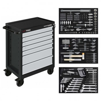 Werkzeugkoffer Basic Line B152 1/4 + 3/8 103 Stk KraftwerkDas Kraftwerk-Steckschlüsselset Basic Line B152 1/4 + 3/8 103 Stück verfügt außerdem über einen 7,2-V-Akkuschrauber mit 1500 mAh.