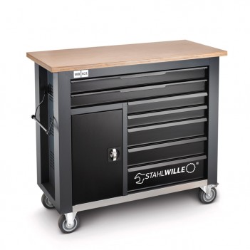 Servante d'atelier 7 tiroirs avec établi, 141 outils 151A StahlwilleLa servante d'atelier 7 tiroirs avec établi, 141 outils 151A Stahlwille offre robustesse, sécurité à 3 niveaux, plan multiplex FSC et un assortiment complet de 141 outils professionnels.